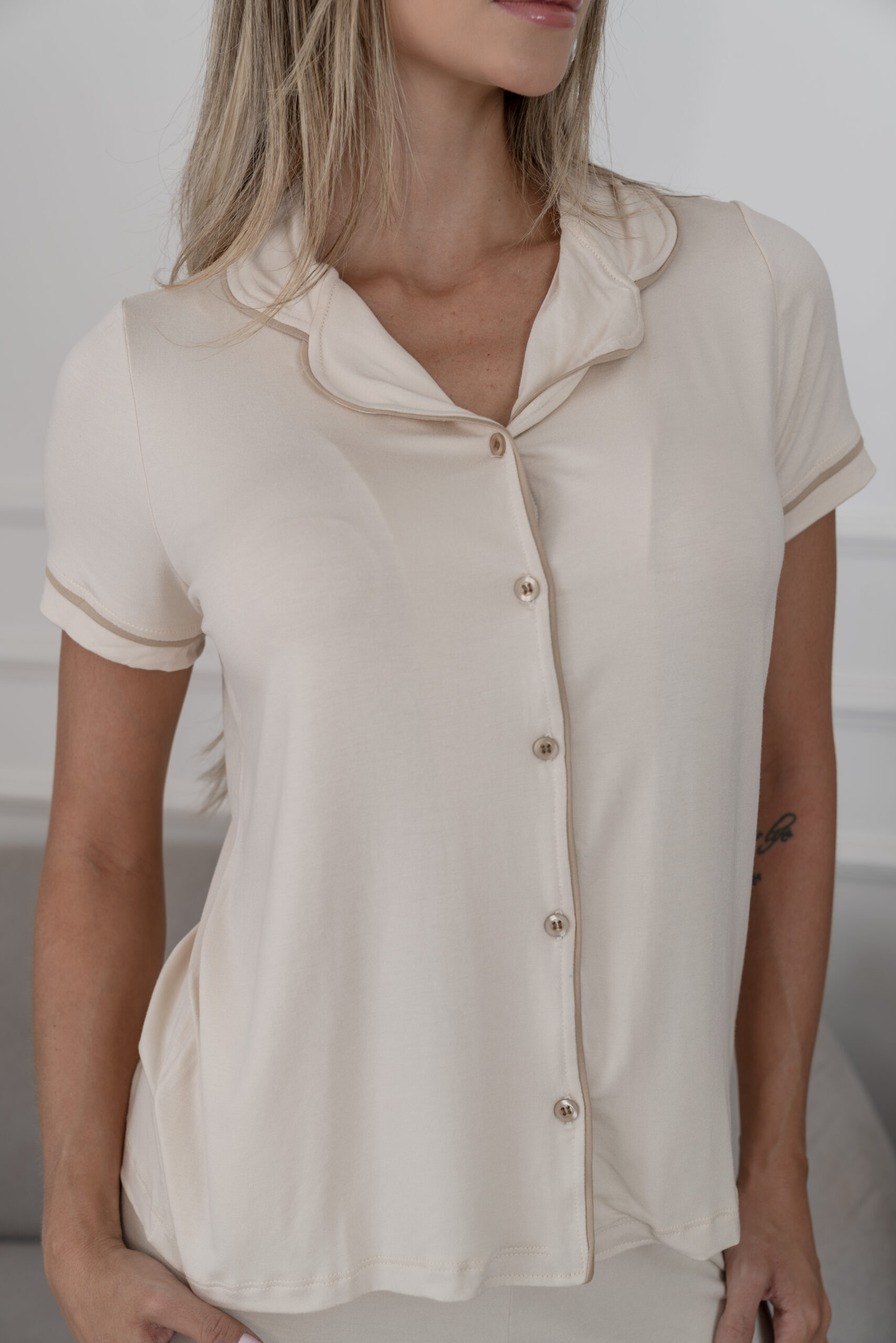 Seja o primeiro a avaliar “Conjunto Americano Curto Luna | Bege com Detalhes Dourados”